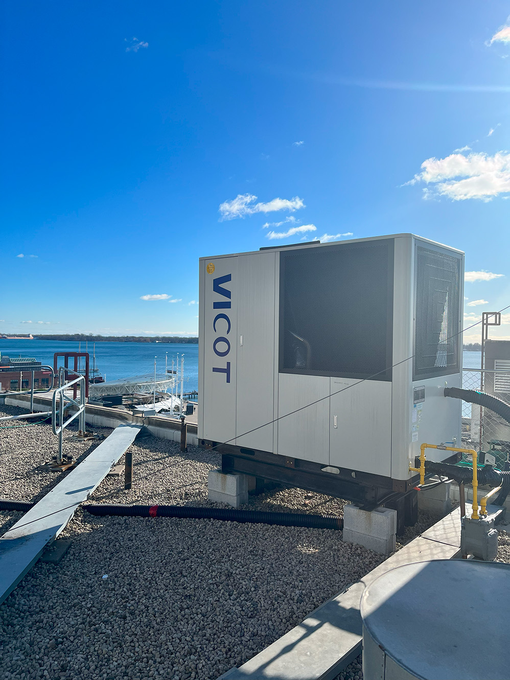 چیلرهواخنک VICOT چین 220 تن تبرید برای تامین بار سرمایی ساختمان و کاربردهای صنعتی طراحی و تولید می شوند در این سیستم گرمای ساختمان توسط یک سیکل سرمایی تراکمی از طریق گازهای سازگار با طبیعت در کندانسور هوایی به محیط خارج از ساختمان تخلیه می گردد